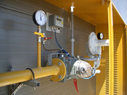 Radna cijev završava u plinskom ormariću koji se nalazi na fasadi objekta. Moze biti isturen iz fasade ili ugraden u fasadu, ali zaporni ventili prije i poslije mjerno redukcijskog ormarića moraju biti u svakom trenutku dostupni. Mjerno redukcijski set se sastoji od više elemenata a najvažniji su: glavni ventil, hvatač nečistoća, regulator pritiska i plinsko brojilo. Ormarić može biti plastičan ako se koristi za manje objekte, sa plinskim brojilima G4 i G6. Također može biti izrađen od čeličnog ili prokrom lima, ako se koristi za veće potrošače sa velikim regulatorima i brojilima. Može se izraditi i samostojeća mjerno redukcijska stanica koja nije vezana za objekat.