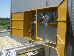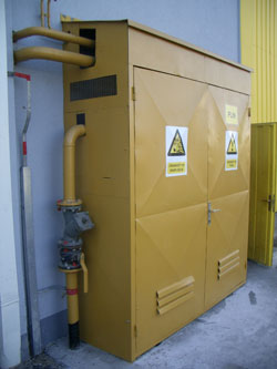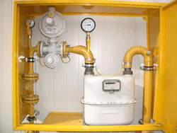 Radna cijev završava u plinskom ormariću koji se nalazi na fasadi objekta. Moze biti isturen iz fasade ili ugraden u fasadu, ali zaporni ventili prije i poslije mjerno redukcijskog ormarića moraju biti u svakom trenutku dostupni. Mjerno redukcijski set se sastoji od više elemenata a najvažniji su: glavni ventil, hvatač nečistoća, regulator pritiska i plinsko brojilo. Ormarić može biti plastičan ako se koristi za manje objekte, sa plinskim brojilima G4 i G6. Također može biti izrađen od čeličnog ili prokrom lima, ako se koristi za veće potrošače sa velikim regulatorima i brojilima. Može se izraditi i samostojeća mjerno redukcijska stanica koja nije vezana za objekat.