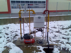 Glavni zaporni organ uvijek mora biti dostupan i ako je smješten unutar građevine, mora izdržati toplinsko opterećenje do 650 °C, što se dokazuje certifikatom ovlaštene ustanove, pri čemu su zahtjevi za ispitivanje određeni prema DIN 3230, 3389, 3537 i 3547. Kod postavljanja u podrum, za priključke veće od DN 80 te za priključke javnih zgrada, bez obzira na dimenziju, valja predvidjeti dodatni zaporni organ koji se ugrađuje na priključku ispred zgrade.